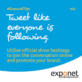 There is a lot of conversation happening online. Push your way into the conversation by using Twitter and Instagram as a social medium for sharing what is happening on your stand in real-time. Find relevant Hashtags and use them within your own posts so your product can be seen and shared.