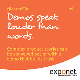 Selling a product that takes a bit of explaining? Why not run a live demonstration right there on the stand! Only then can potential customers really see it operating successfully, plus they may think of questions that wouldn't otherwise be answered by posters and diagrams full of words.