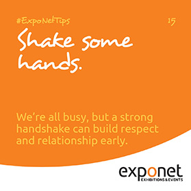 We are all busy people, and our time is precious, but that shouldn't stop you making the effort to physically connect with attendees by simply offering a handshake. This small act can start a conversation, hold an attendee within your stand for a few moments longer, or simply add respect and courtesy to the interaction. Don't forget to make it a strong handshake too!