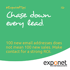 Just because you networked well and collected 100 new emails doesn't mean you have 100 new customers. Chase your leads! Follow up and personally make contact with each new prospect, deliver on any promised activity, and then track the results for a clear ROI.