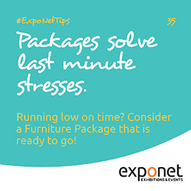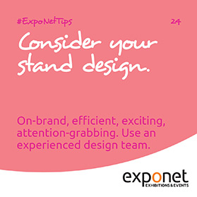 The correct stand design is critical. It should be on-brand, efficient, deliver the required message, display your product, attract attention and promote your business... all at the same time! Use professional and experienced staff (like our ExpoNet design team!) to design a customised stand that maximises your impact, or select from some of our cost effective stand packages.