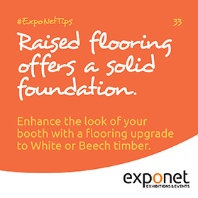 Enhance the look of your booth with a flooring upgrade to White or Beech timber.