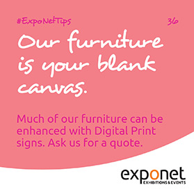 Much of our furniture can be enhanced with Digital Print signs. Ask us for a quote.