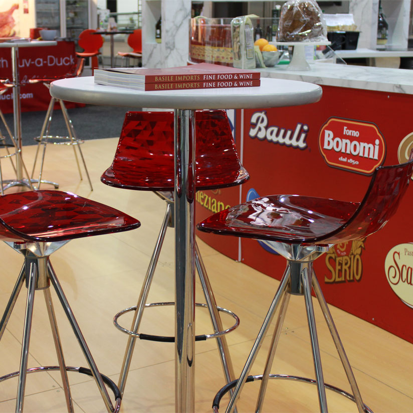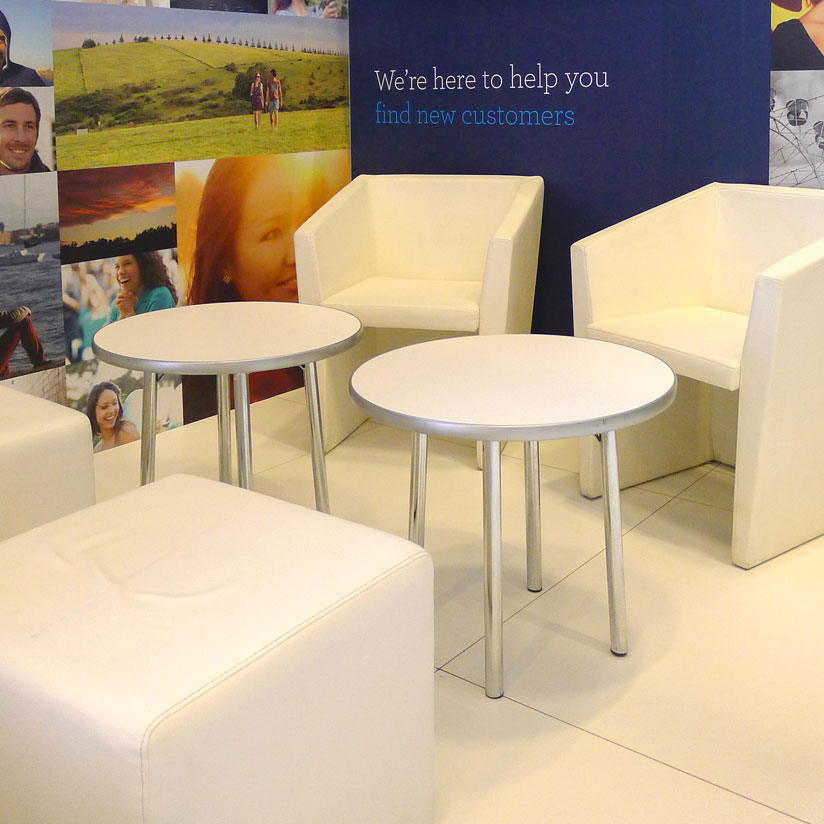 ExpoNet has a spectacular range of furniture for hire to transform your stand. From floor to ceiling, you can now style your space with contemporary and stylish chairs, lounges, ottomans, bars, bar stools, bar tables, coffee tables, cafe seating, shelving, showcases and display units—the sky’s the limit!