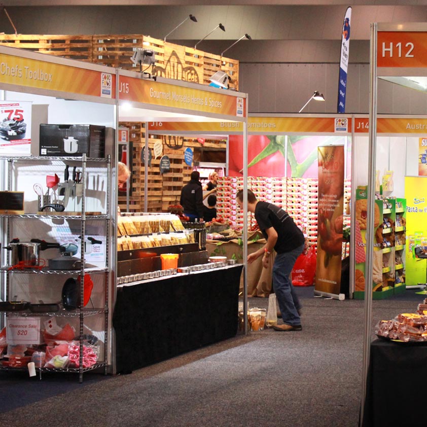 Standard Octanorm Booths include: - Polished aluminium framing 2.5mH - White melamine or Silver Grey fabric infill panels - Digital print Fascia on 100% recyclable substrates - 2x Energy efficient track lights per 9m2 stand - Reusable 1x1m carpet tiles
