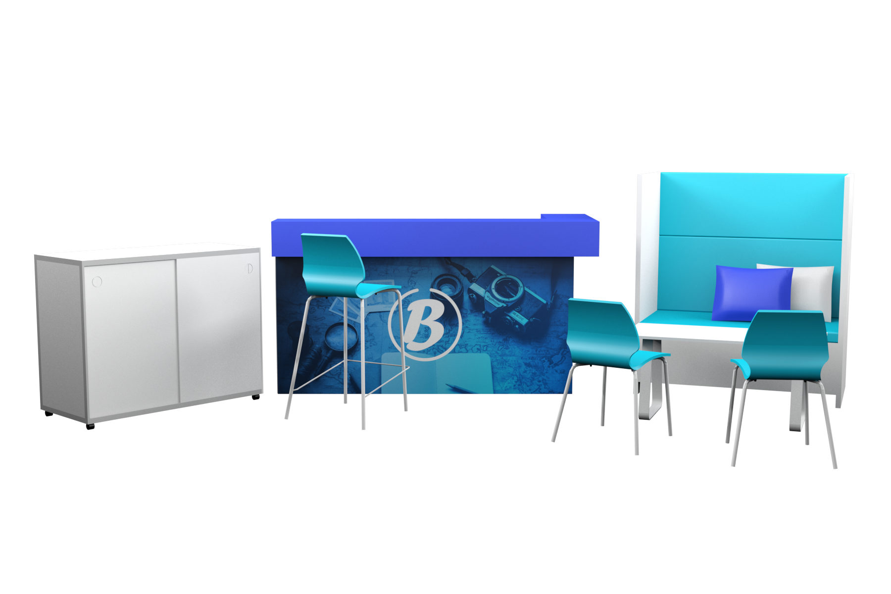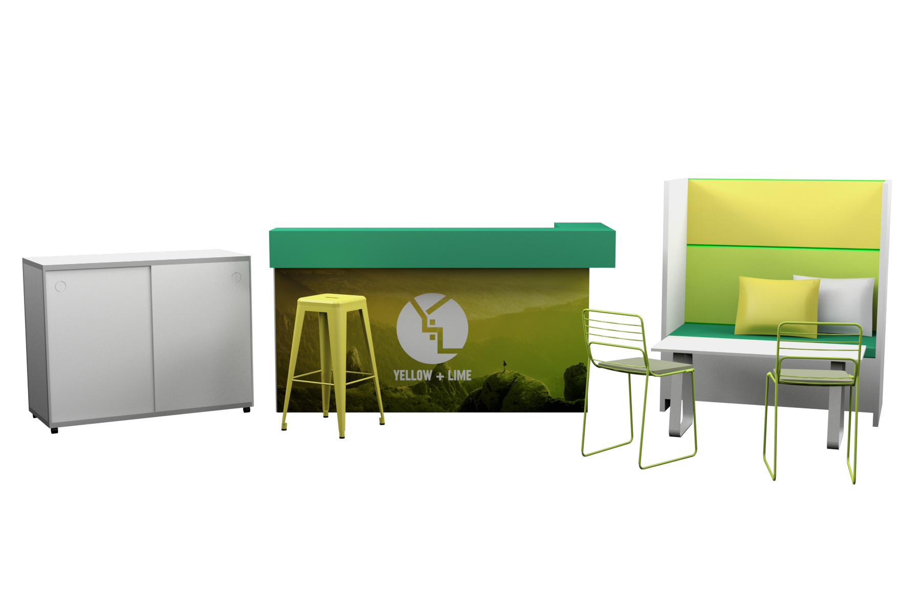 - 1 x Lounge with coloured fabric seat-back